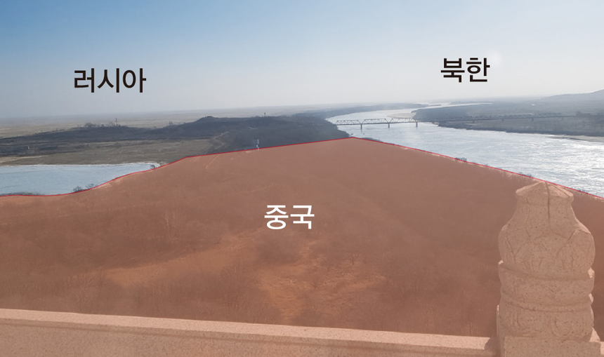 나머지 물줄기도 차가운 유속을 늦추지 않고 투먼圖們에서 두만강이 되더니 90도 이상을 꺾었다. 서해에서 압록강으로 오르며 긋기 시작한 한반도 국경선을 동해까지 끌어다가 마감하였다. 이 두만강이 바다에 닿기 직전 한 중국 도시를 휘감았으니 바로 훈춘琿春이다. 훈춘 지역은 세 나라의 영토가 얼굴을 맞대고 있어, 러시아 쪽이 블라디보스토크요 북한의 도읍은 경원(경흥의 옛 지명)이다. 삼국이 공존하는 전형적인 국경도시에서 중국말을 해야 할지, 러시아말을 해야 할지, 조선말을 해야 할지 머뭇거리는 사이에도 돌멩이만 던지면 닿을 것 같은 강폭 사이에서, 두만강 푸른 물은 그리운 임을 부르거나 말거나 머뭇거리지 않고 흐르기만 한다.