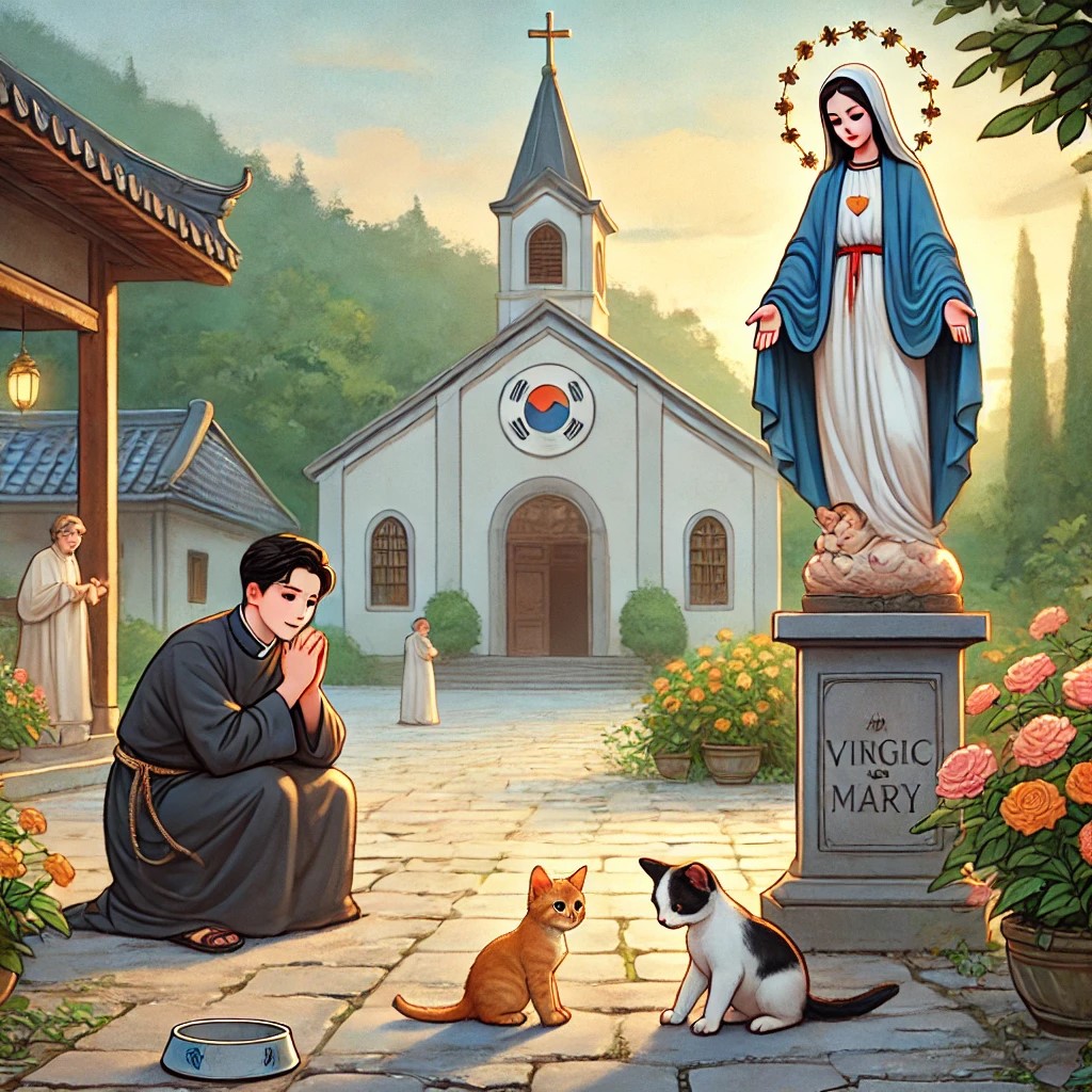 그런데 비단 멍에목만이 아니었다. 배티성지라고, 그곳도 산속에 있는 성지인데, 배티성지 신부 역시 손수, 들고양이들의 밥을 챙기고 있었다.